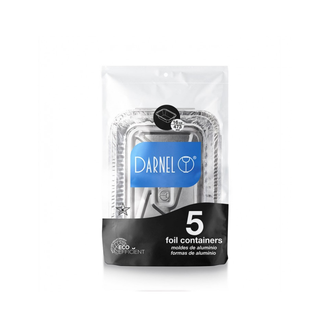Molde de aluminio Darnel con tapa 16 onzas, pack de 5 unidades.