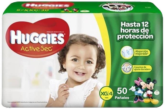 Pañal Huggies Active Sec 4 Xg x 50